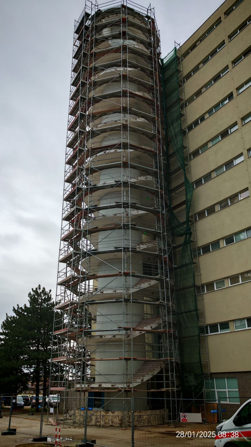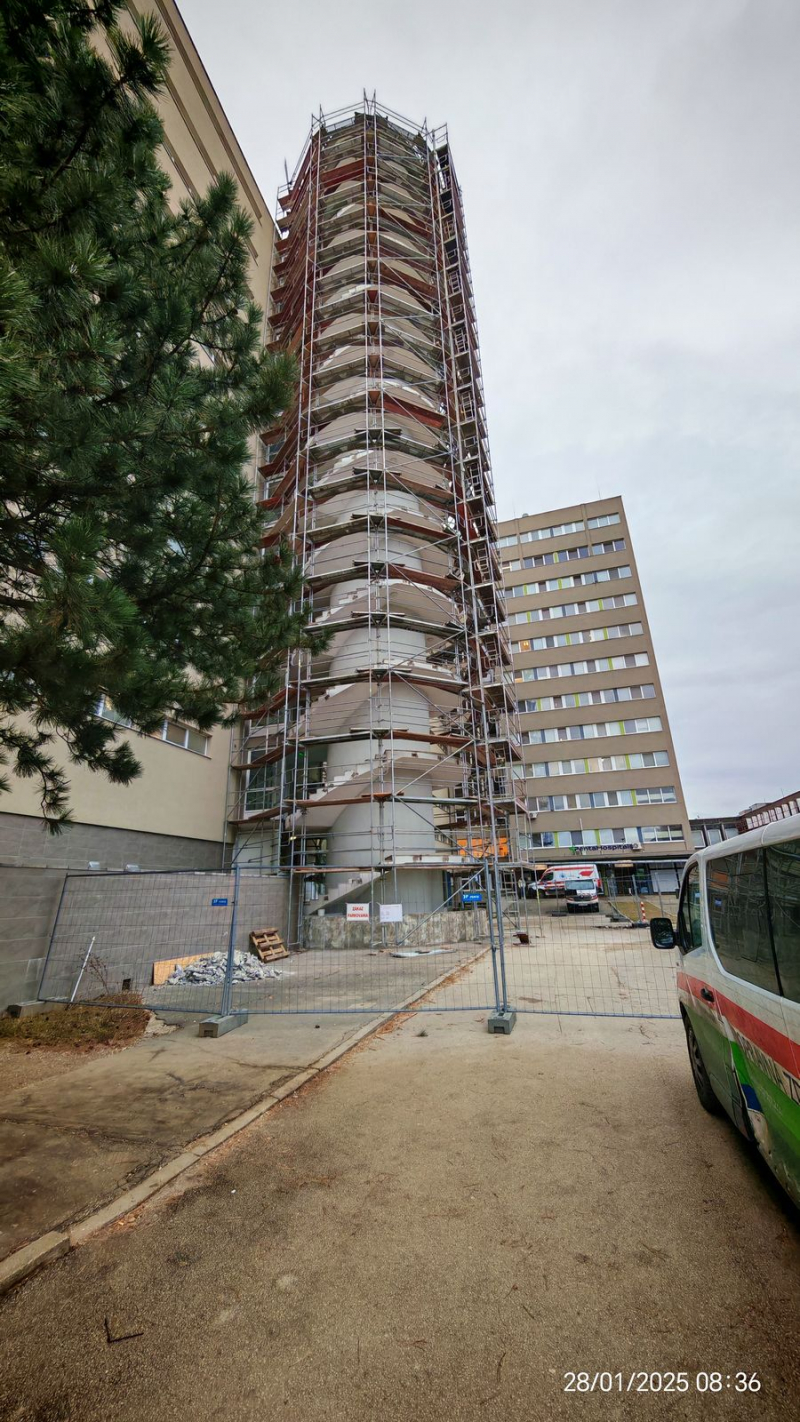 Realizácia lešenia pri rekonštrukcii nemocnice v Galante. Navrhli sme a zrealizovali montáž fasádneho lešenia. Lešenie bolo bezpečne kotvené a umožnilo efektívny a bezpečný prístup počas prác.